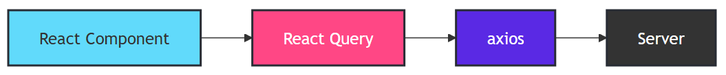 이 과정에서 useState와 useEffect가 복잡하게 얽힌 코드가 만들어진다. 해결책은 axios와 React Query를 함께 사용하는 것이다. 두 도구의 역할은 명확히 나뉜다.